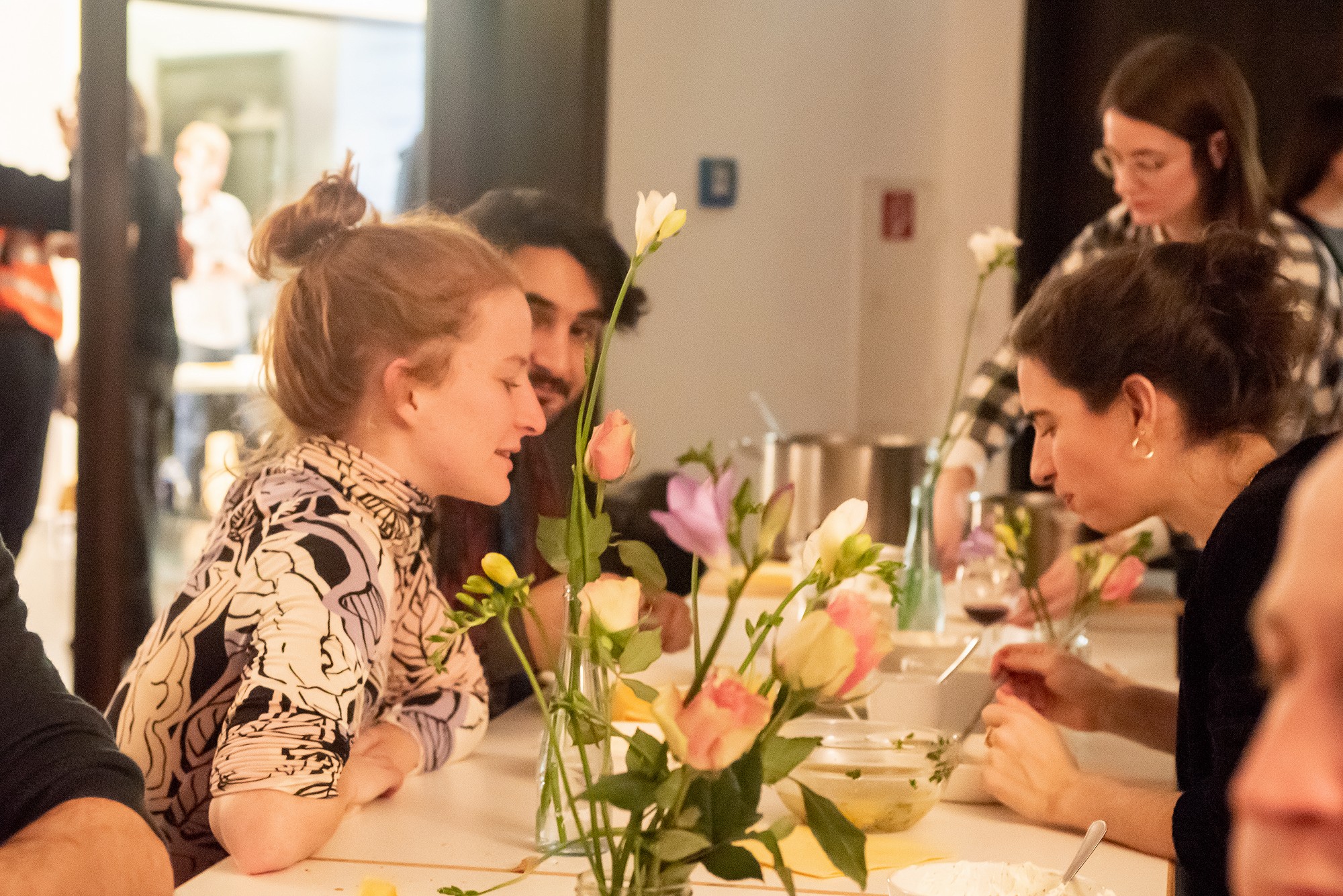 In this context Alexandra Hennig, Mona De Weerdt and Lea Moro asked whether and how encounters can serve as artistic and personal coping strategies. The starting point of their lecture performance was the premise that the encounter with another person releases the potential to question familiar patterns of explanation, inscribed perspectives and one’s own lived reality. In the form of a video installation, live spoken text collages and a communal meal, the long-term project series Sketch of Togetherness was examined and negotiated in terms of its political, artistic, social dimensions and potential. Rather than seeking answers, they presented practices and questions, moments of encounter as temporary communities and complicities – places dedicated to longing and commitment.