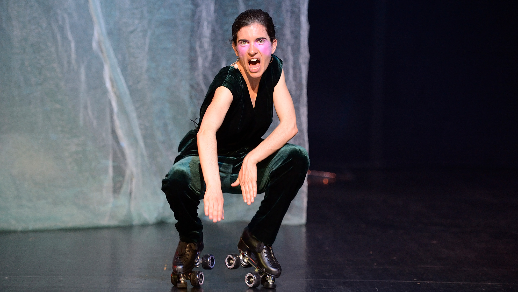 Lea Moro performs the big gesture of musicals with simple abstraction. She embarks on an extravagant path alone and shares her vulnerability with the audience. She moves through the empty stage space on roller skates and so develops a powerful yet fragile language of singing and movement. The standard ways of directing musicals, such as the use of emotionality, stage effects, virtuoso numbers and catchy music are all transferred to a single solo piece. Set to the sound of Vivaldi’s The Four Seasons (1725), Lea Moro sings her way through her musical.